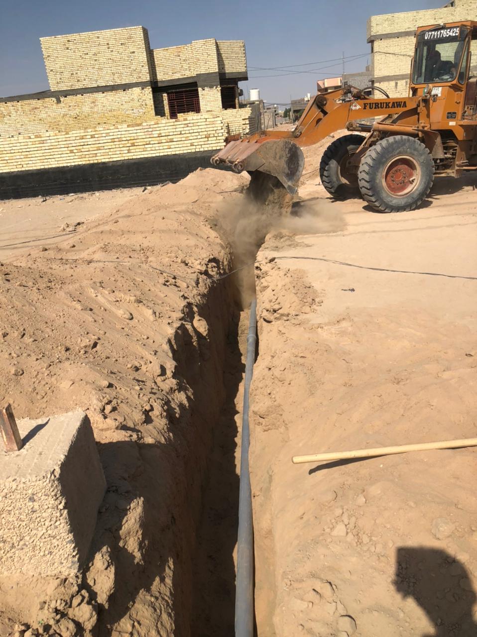 ضمن مشروع تنفيذ شبكة الماء الصافي بين قطاع المهندسين وقطاع 11 وتنفيذ شبكة الماء الصافي في منطقة تصميم 696 قضاء الحر في محافظة كربلاء المقدسة